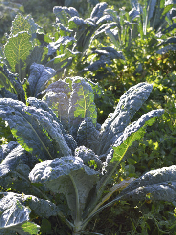 ##Restoration Seeds Dinosaur Kale Variety Trial: started 4/22, transplanted 6/2, photo 11/22, 210 days from sowing, zone 7b. Varieties Top Row: Black Tuscan, Cavolo Nero, Toscano. Second Row: Lacinato, Black Magic, Jagallo Nero, Rainbow Lacinato. Most consistent Lacinato, sow in high density Jagallo Nero. Aphid resistant, Jagallo Nero. See individual variety to learn more.Filter Collection: