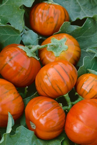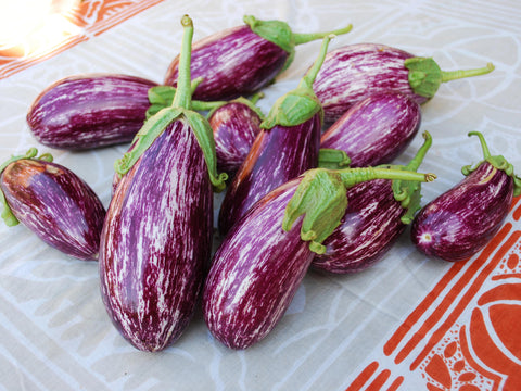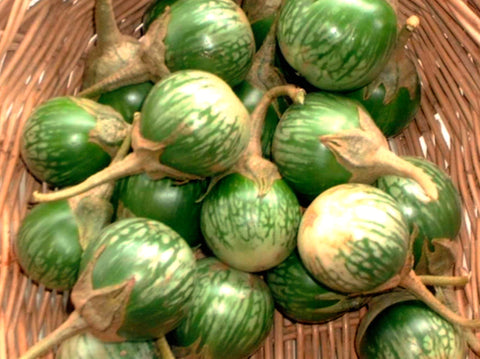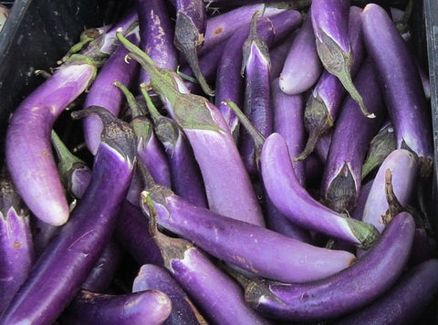 Originated in the South Asia Indo-Burma center of modern-day Myanmar and Bangladesh. It has been cultivated in southern and eastern Asia since prehistory. The first known written record of the plant is found in Qí mín yào shù, an ancient Chinese agricultural treatise completed in 544. Even today, 83 percent of all eggplant production is in modern China and India. The common name comes from the phenotype varsities that are white and smaller oval much the same size as chicken or duck eggs. Warm season tender annual in the Solanaceae family includes peppers, tomatoes, tomatillos and potatoes. Also known as aubergine in most of Europe and Brinjal in India. Delicious eggplant recipes.