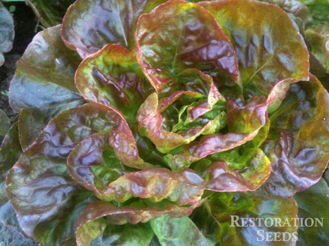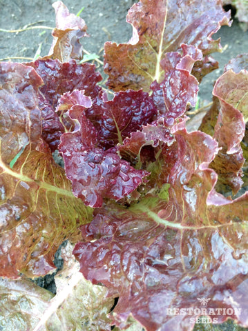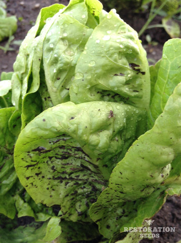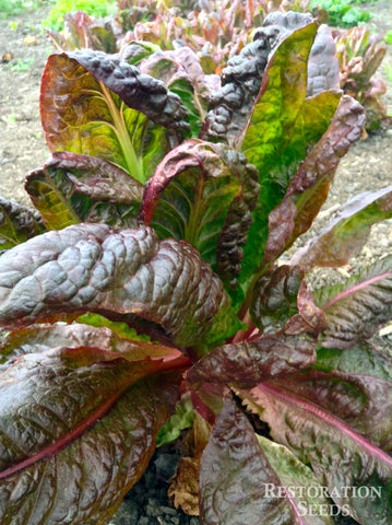 Restoration Seeds Lettuce Variety Trial: 105 days from sowing, started 3/31, transplanted 4/7, photo 7/15, zone 7b. Varieties Top Row: Amish Deer Tongue, Blushed Butter Cos, Brune Percherone (third and fourth off type), Crispino, Green Batavia, Helvius, Kalura. Bottom Row: Little Gem Pearl, Lolla Rossa MT, Mascara, New Red Fire, Red Cash MT, Red Flamingo, Rouge d'Hiver. Least bolt resistant: Blushed Butter Cos, Rouge d'Hiver, Little Gem Pearl. Rest not bolting after 105 days. See individual variety to learn more.